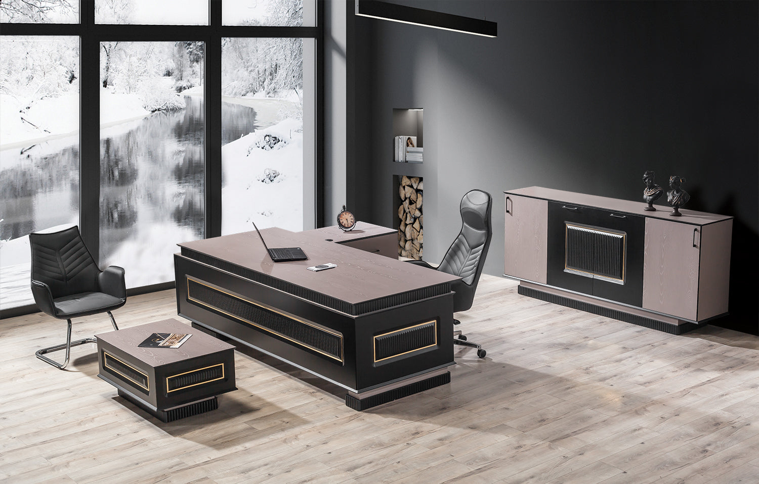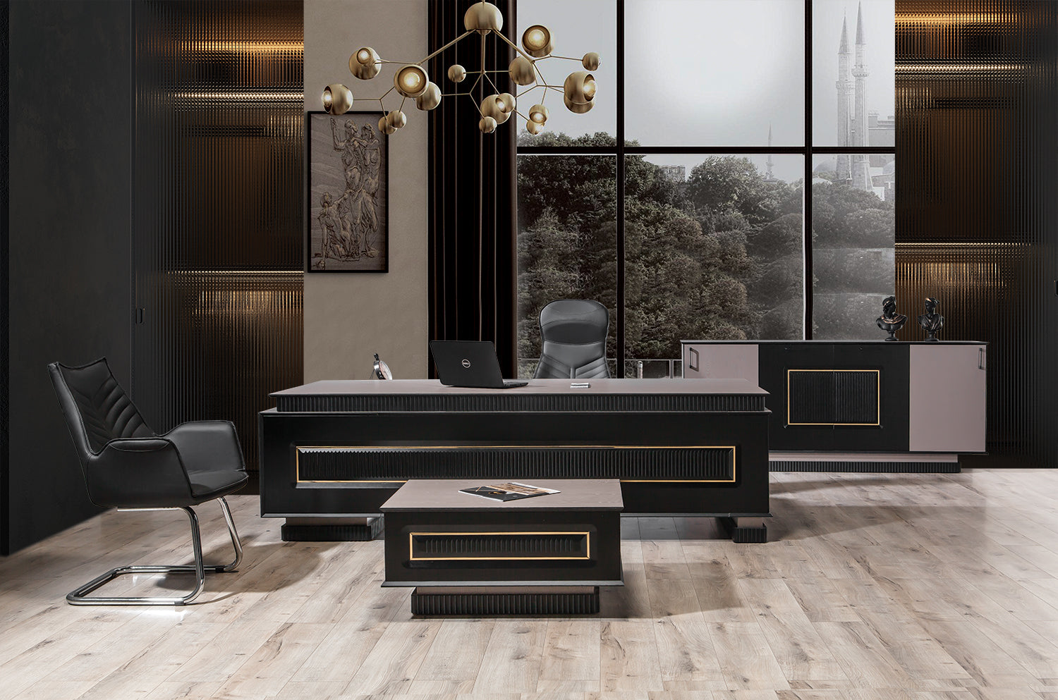 Profesyonel Büro Takımı, zarif detayları ve fonksiyonel yapısıyla çalışma alanınıza verimlilik, şıklık ve modern bir prestij kazandırır. Yoğun iş temposunu organize ve konforlu bir şekilde yöneteceğiniz bu özel tasarım, işlevselliği estetikle buluşturarak çalışma ortamınıza profesyonel ve davetkâr bir atmosfer sunar.