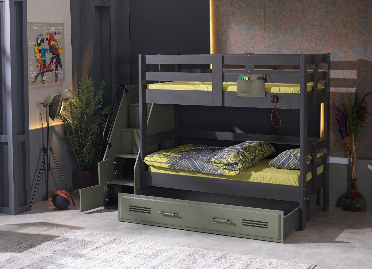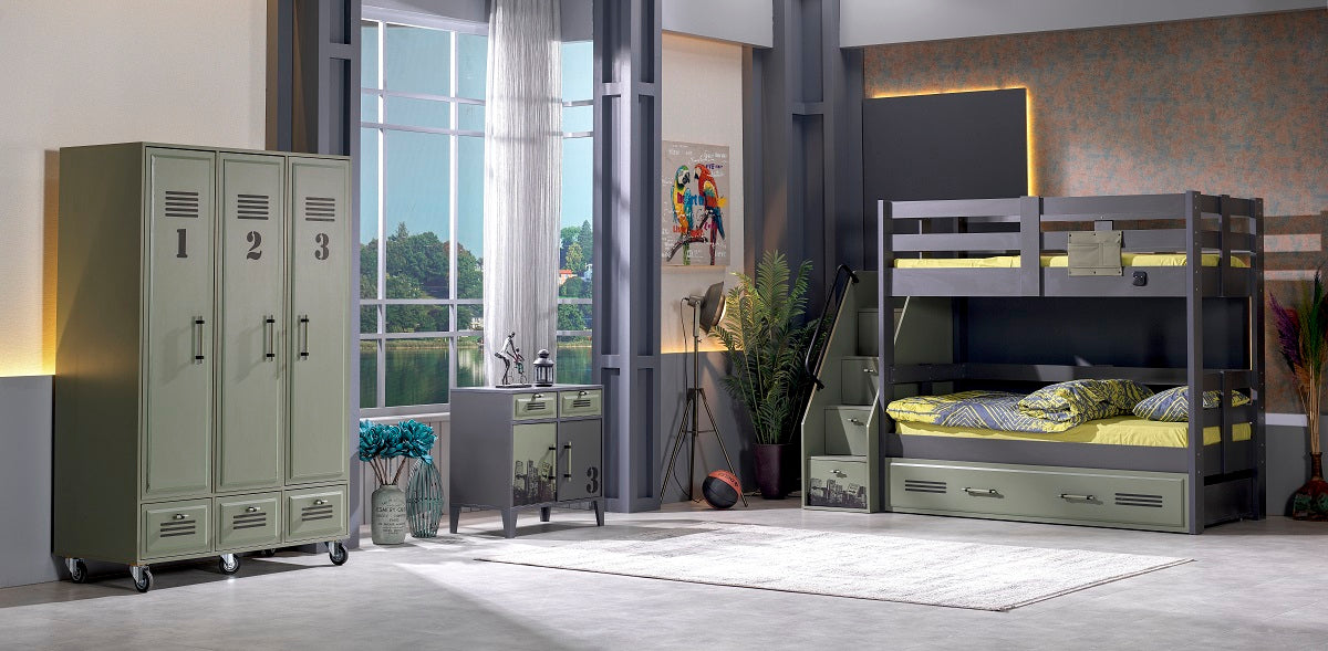 Çocuk Odası Takımı, canlı renkleri, güvenli detayları ve fonksiyonel yapısıyla çocuğunuzun odasına neşe, güven ve hayal dünyası kazandırır. Büyüme serüvenine eşlik eden bu özel tasarım, dayanıklılığı eğlenceli estetikle buluşturarak çocuğunuzun yaşam alanına sıcak ve keyifli bir atmosfer sunar.