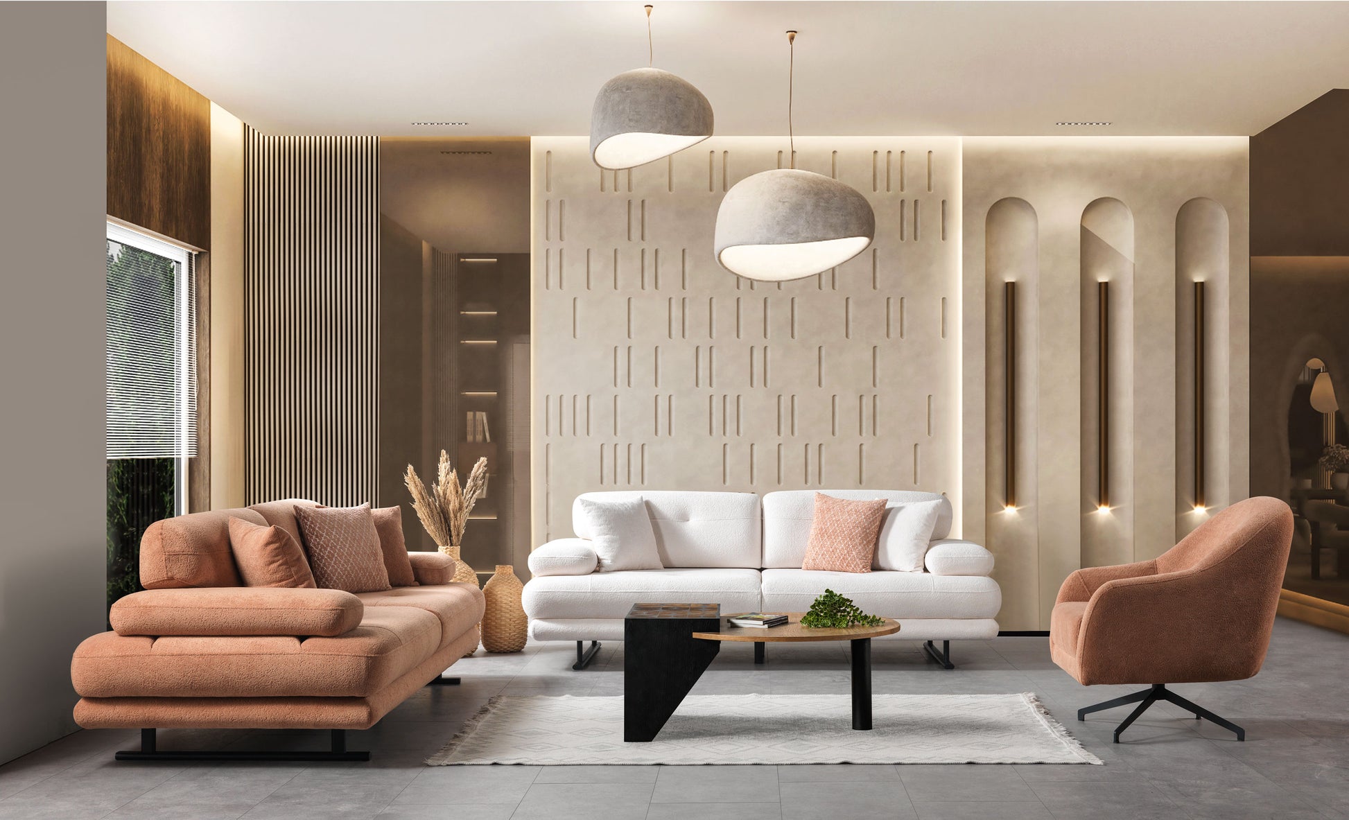 Karizma Koltuk Takımı, estetik tasarımı ve konforu bir araya getirerek yaşam alanlarınıza şıklık ve rahatlık kazandırır. Günlük kullanımda maksimum konfor sunarken, misafir ağırlamalarında göz alıcı bir duruş sergiler.