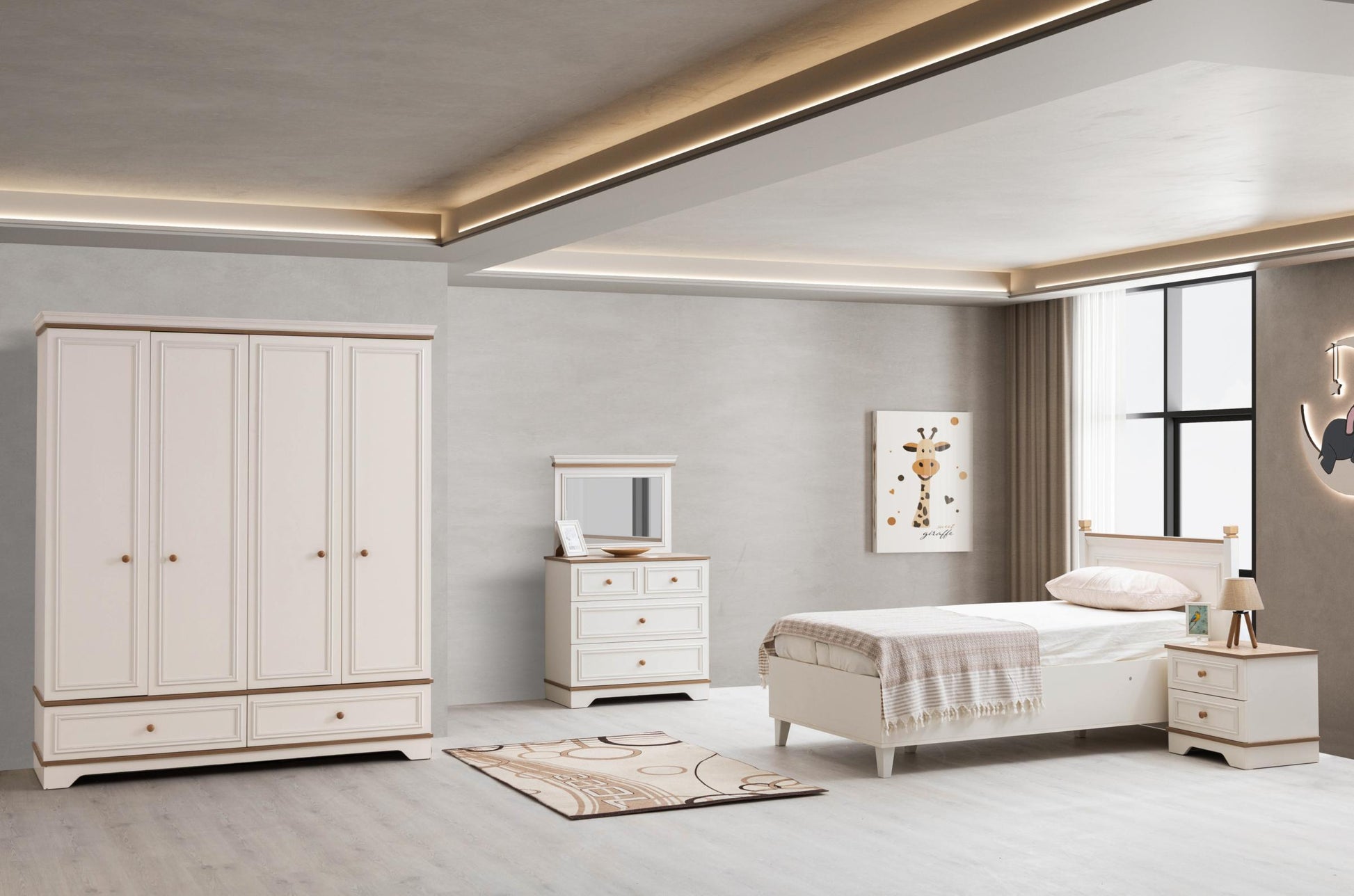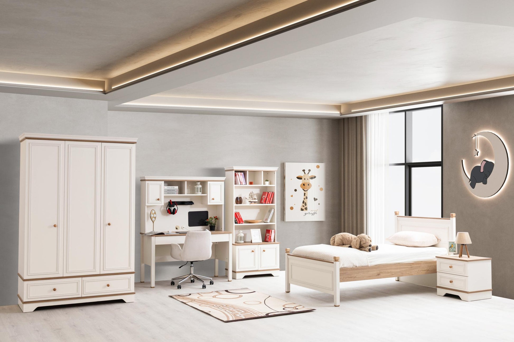 Genç Odası Takımı, çocuğunuzun dinlenme, oyun ve öğrenme alanını daha güvenli, düzenli ve eğlenceli hale getiren, onun kişiliğini yansıtan özel bir tasarımdır.