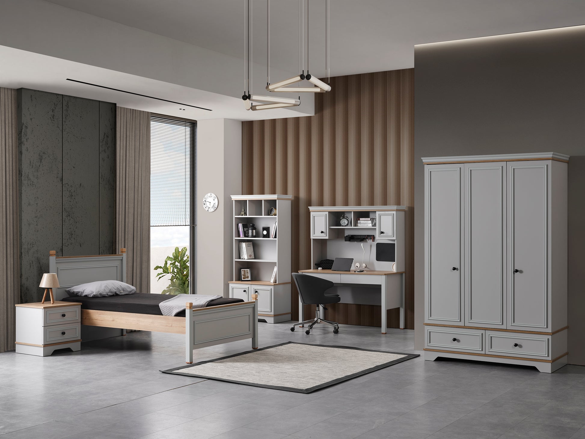 Genç Odası Takımı, çocuğunuzun dinlenme, oyun ve öğrenme alanını daha güvenli, düzenli ve eğlenceli hale getiren, onun kişiliğini yansıtan özel bir tasarımdır.