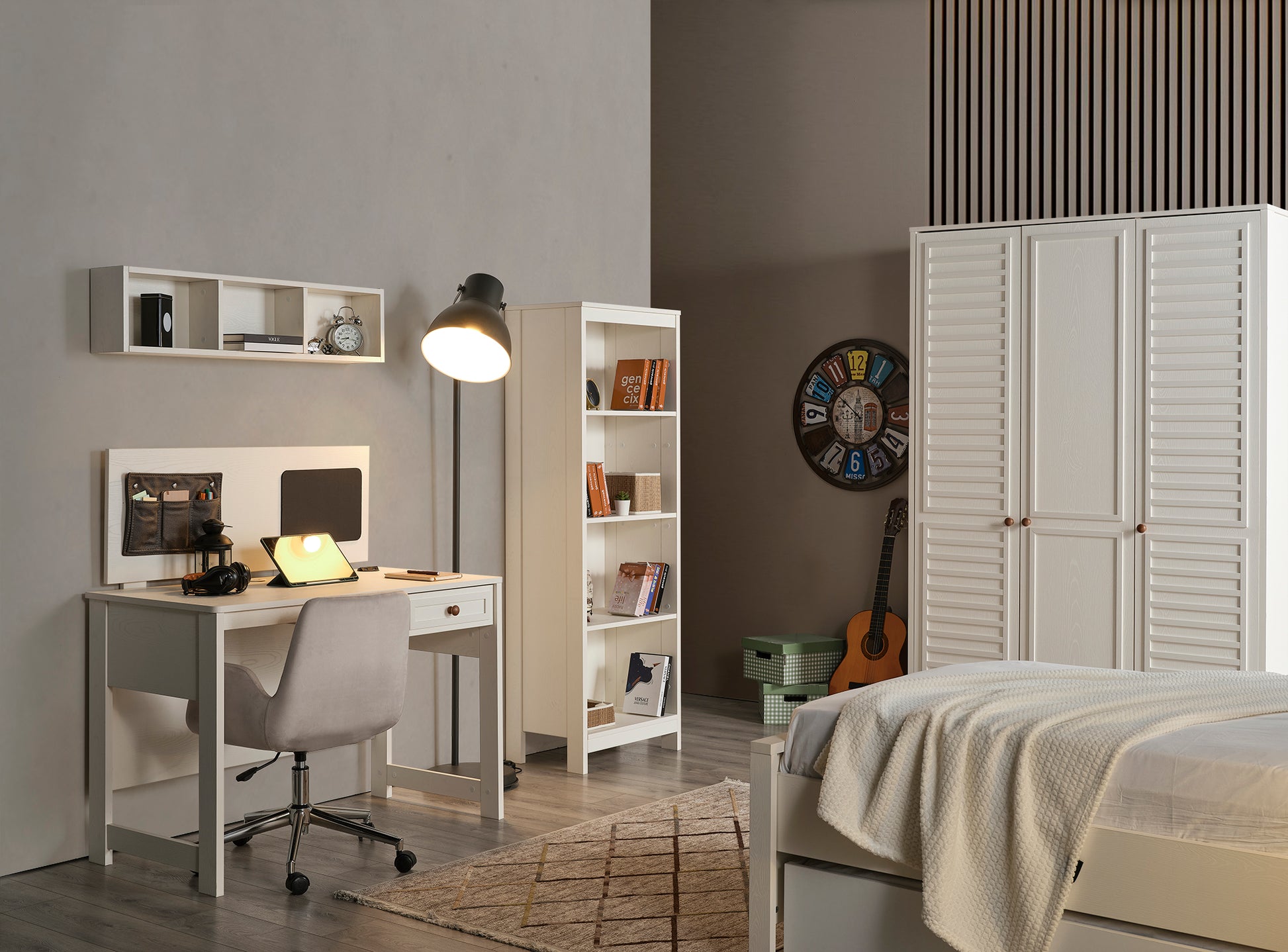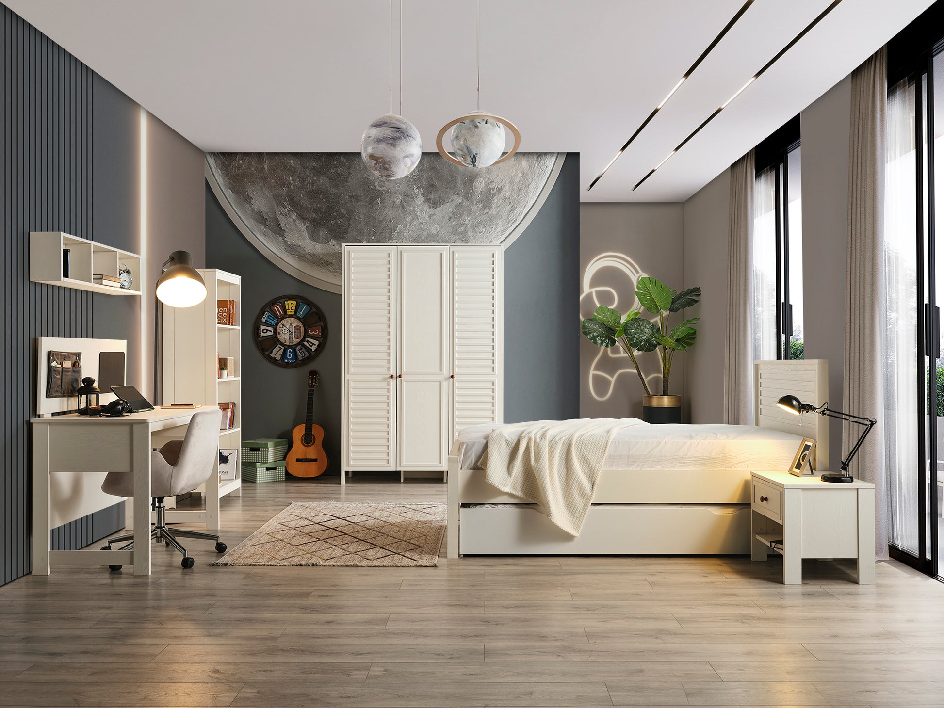 Genç Odası Takımı, çocuğunuzun dinlenme, oyun ve öğrenme alanını daha güvenli, düzenli ve eğlenceli hale getiren, onun kişiliğini yansıtan özel bir tasarımdır.