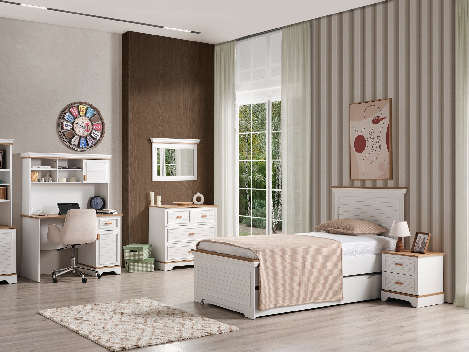 Genç Odası Takımı, çocuğunuzun dinlenme, oyun ve öğrenme alanını daha güvenli, düzenli ve eğlenceli hale getiren, onun kişiliğini yansıtan özel bir tasarımdır.