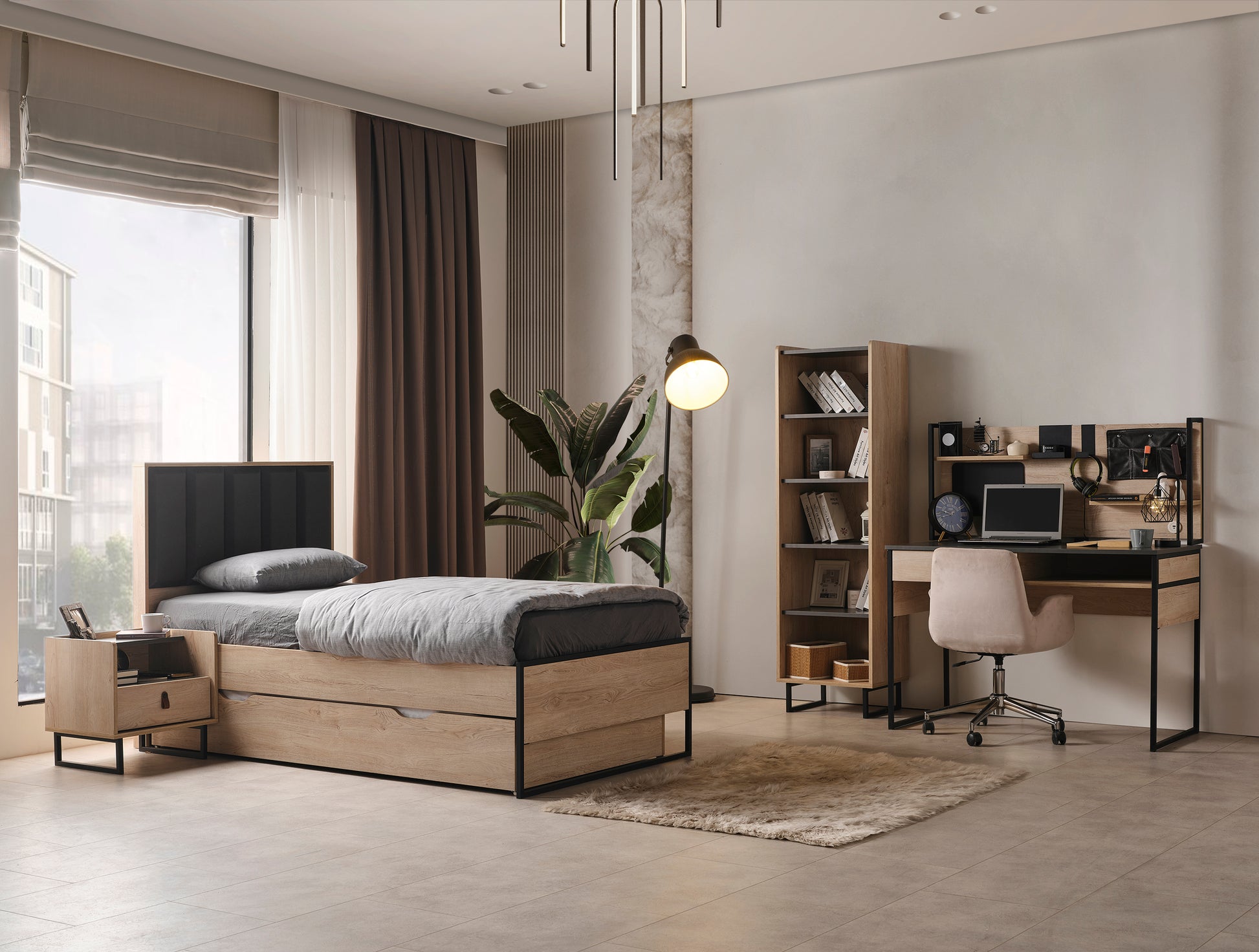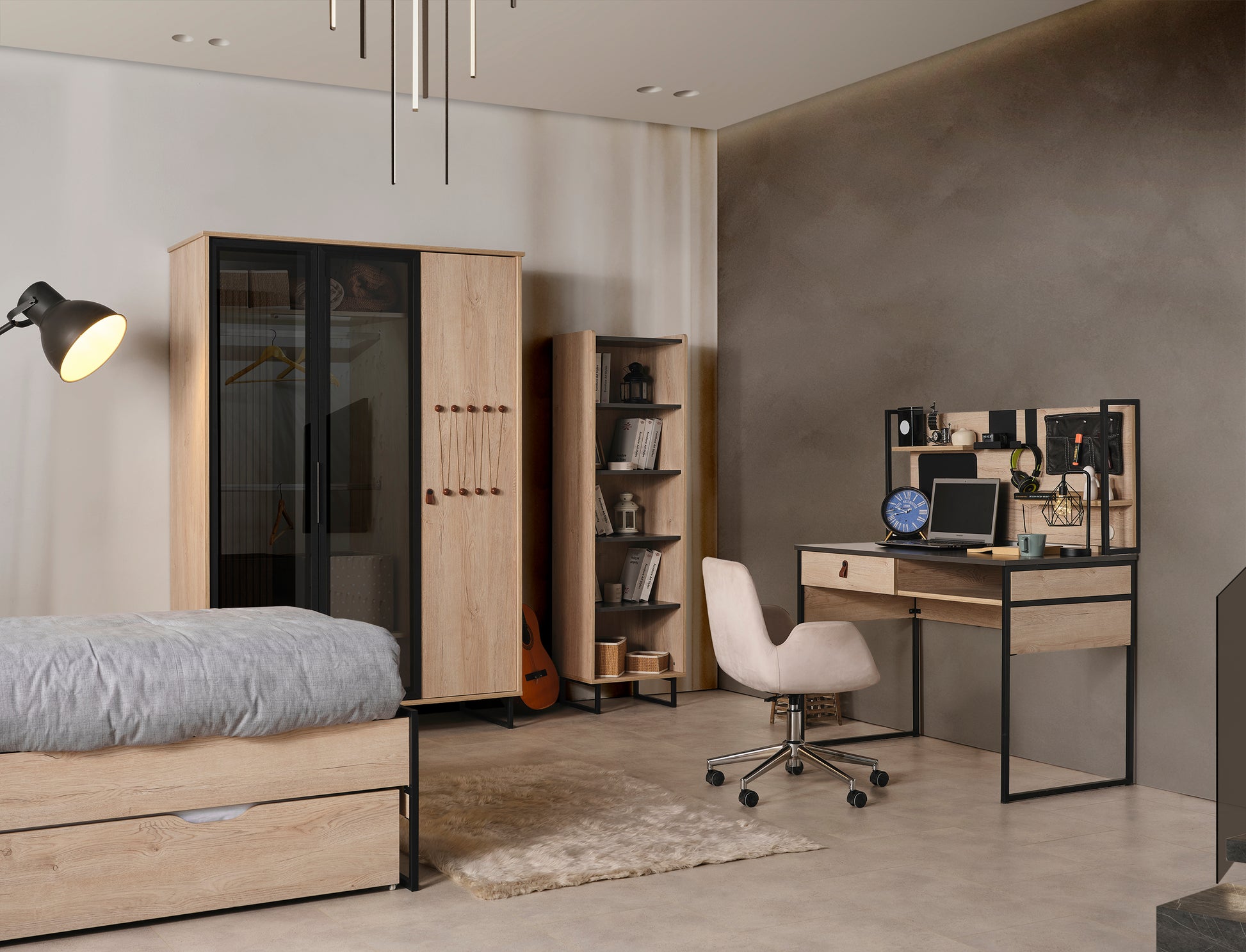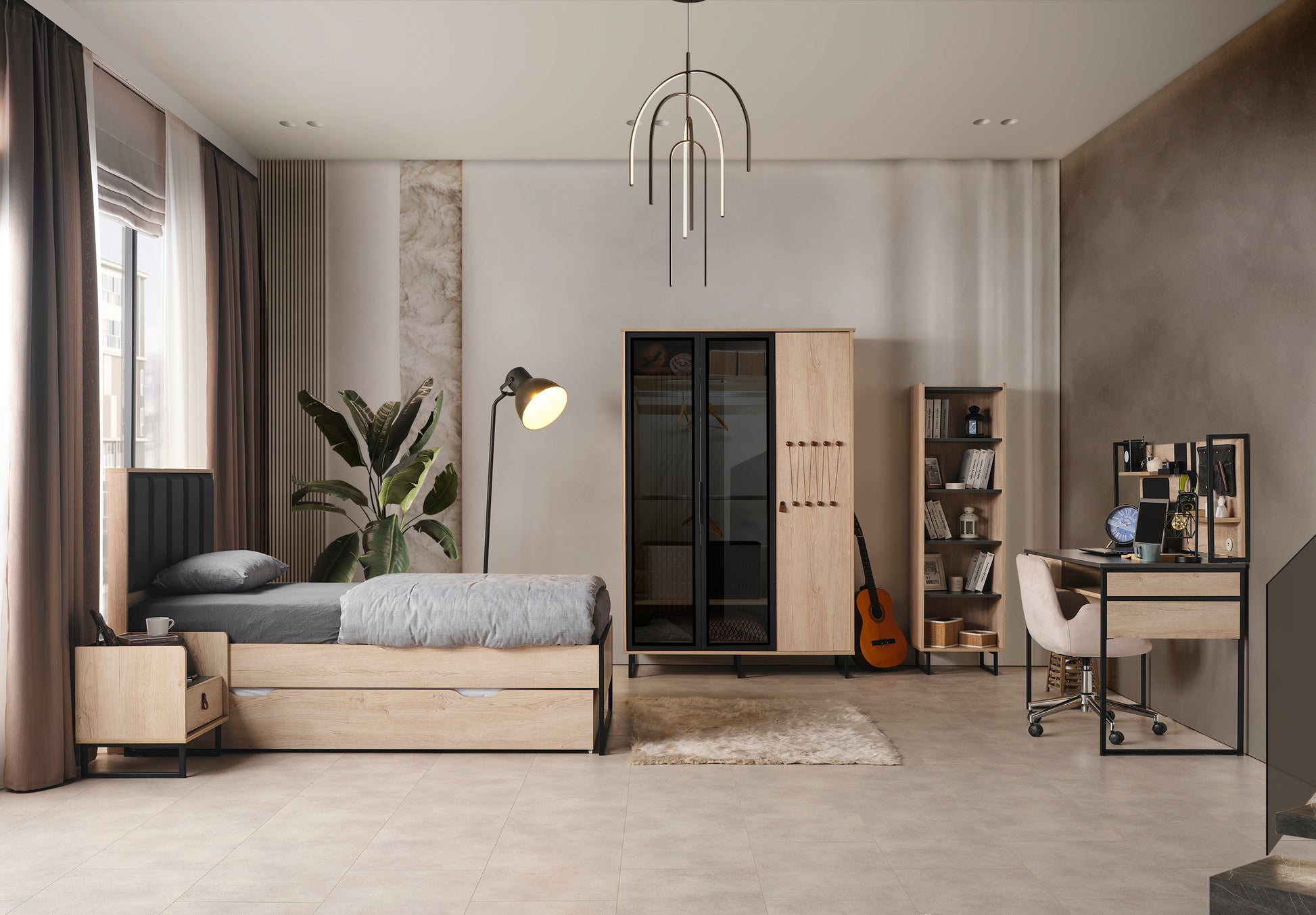 Genç Odası Takımı, çocuğunuzun dinlenme, oyun ve öğrenme alanını daha güvenli, düzenli ve eğlenceli hale getiren, onun kişiliğini yansıtan özel bir tasarımdır.