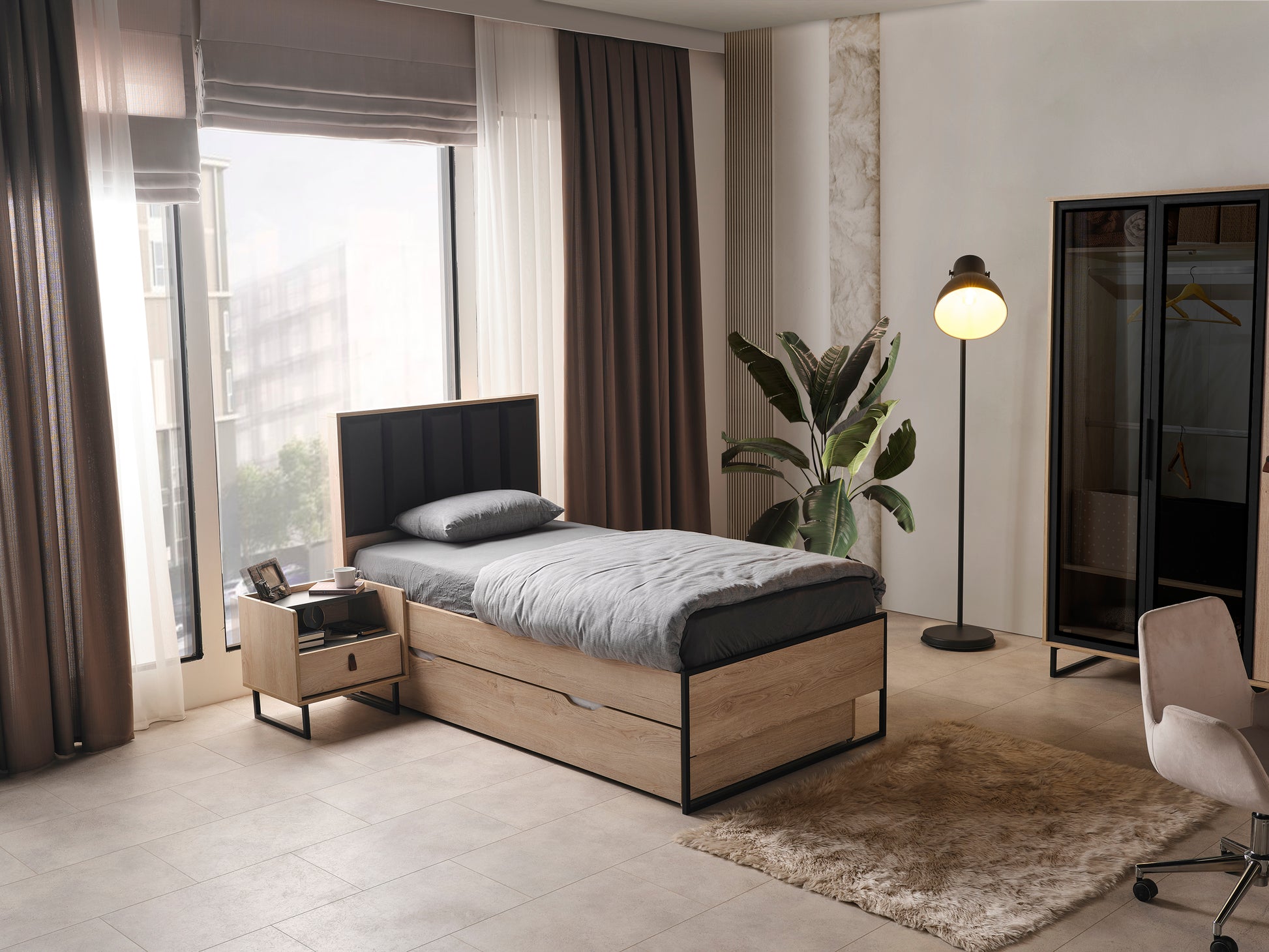 Yatak ölçüsü (90x200, 120x200 cm) ve dolap iç düzeni ihtiyaca göre belirlenebilir.