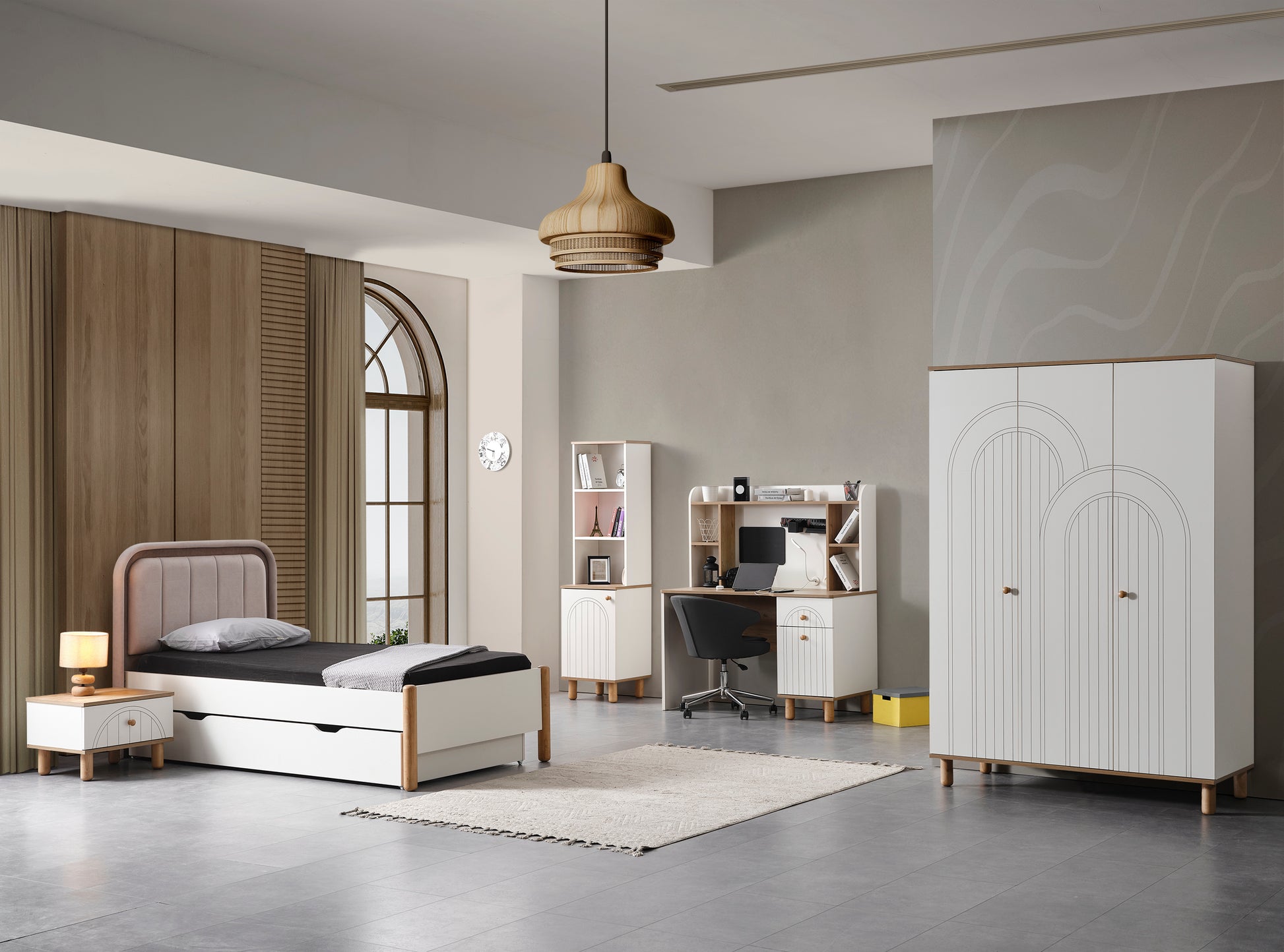 Genç Odası Takımı, çocuğunuzun dinlenme, oyun ve öğrenme alanını daha güvenli, düzenli ve eğlenceli hale getiren, onun kişiliğini yansıtan özel bir tasarımdır.