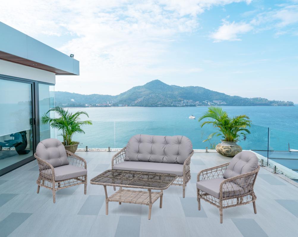 Konfor, dayanıklılık ve estetiği bir arada sunan bu masa takımı, açık alanlarınızın vazgeçilmez parçası olacak.