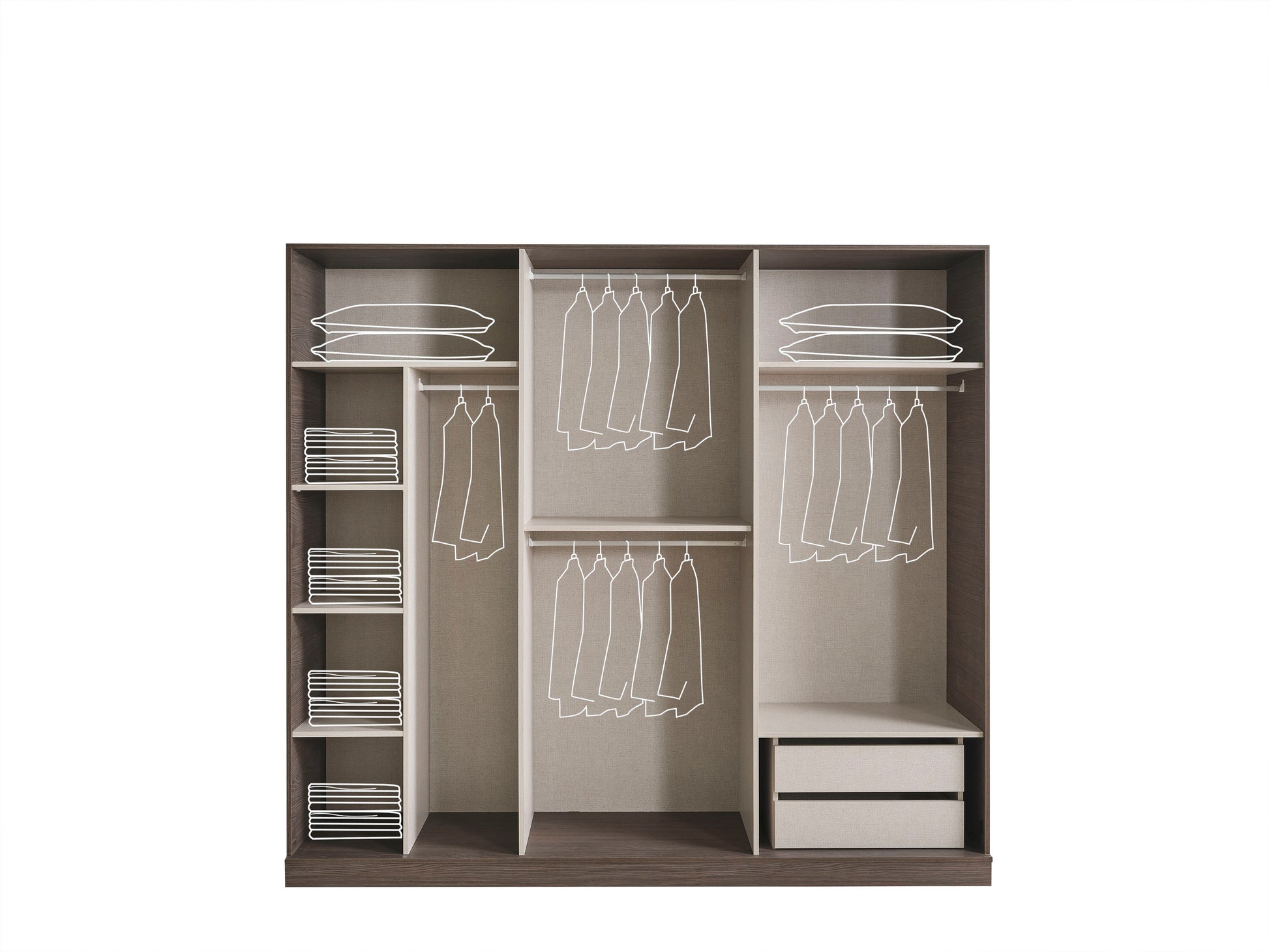 Gardırop ölçüsü ve iç düzeni isteğe göre özelleştirilebilir