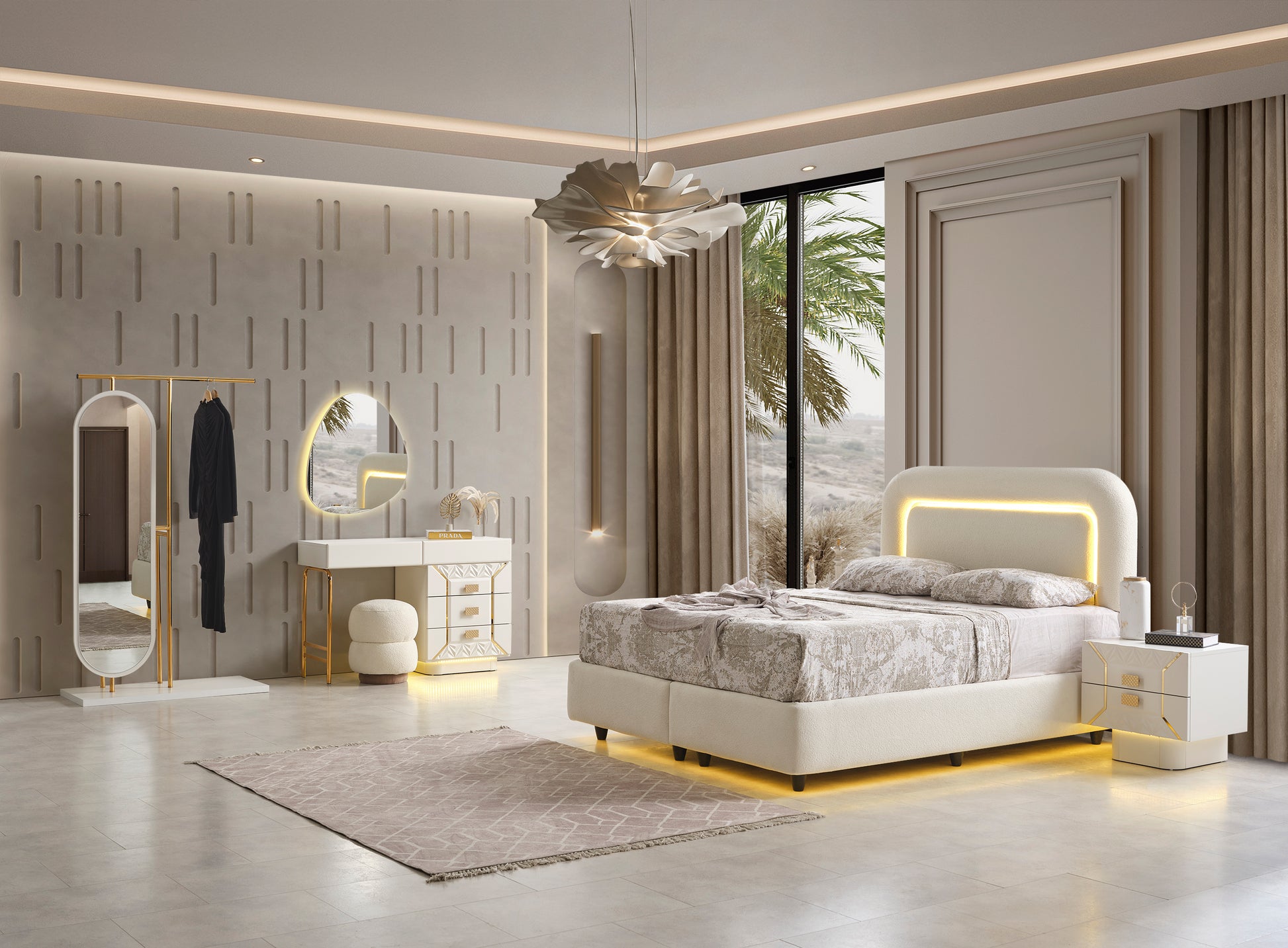 Merlin Yatak Odası Takımı, dinlenme alanınızı daha konforlu, mekanınızı daha şık ve prestijli hale getiren özel bir tasarımdır.