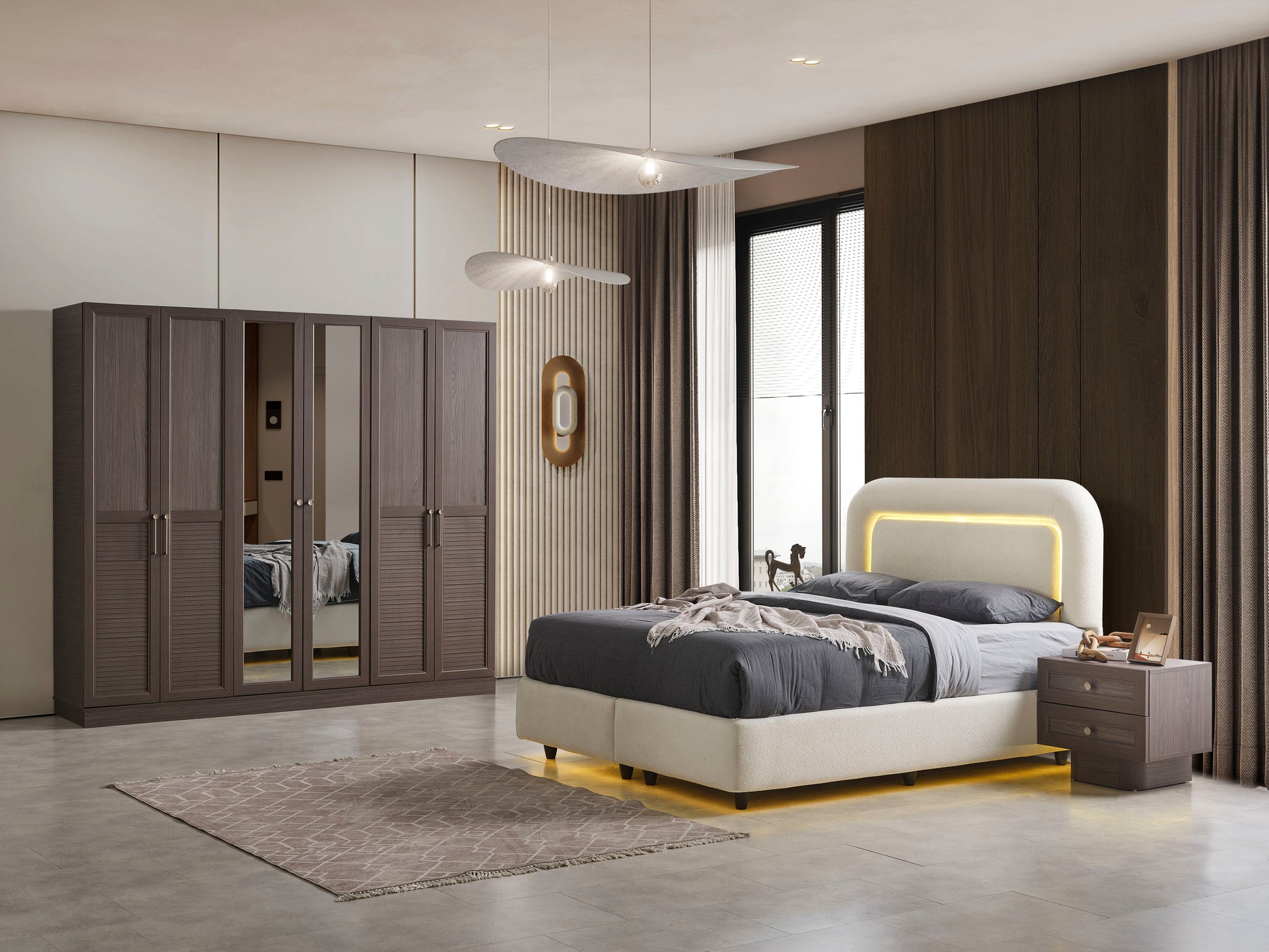 Zarif detayları ve fonksiyonel yapısıyla Rebeka Yatak Odası Takımı, yatak odanıza şıklık, huzur ve prestij kazandırır. Günün yorgunluğunu geride bırakacağınız bu özel tasarım, konforu estetikle buluşturarak yaşam alanınıza sıcak ve davetkâr bir atmosfer sunar.