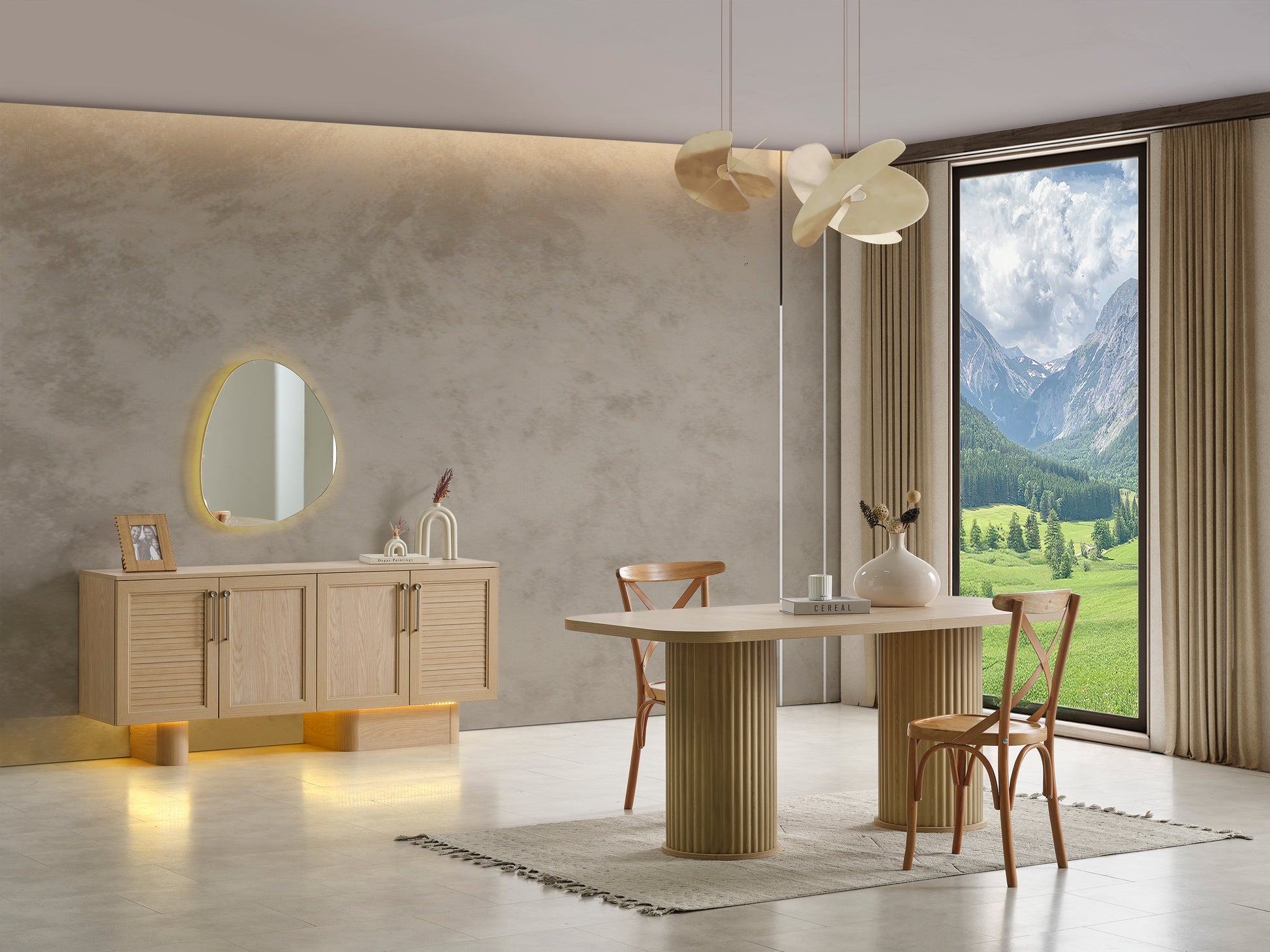 Yemek Odası, zarif detayları ve fonksiyonel yapısıyla yemek alanlarınıza şıklık ve prestij kazandırır. Aile sofralarından özel davetlere kadar her anınıza estetik bir dokunuş sunar.